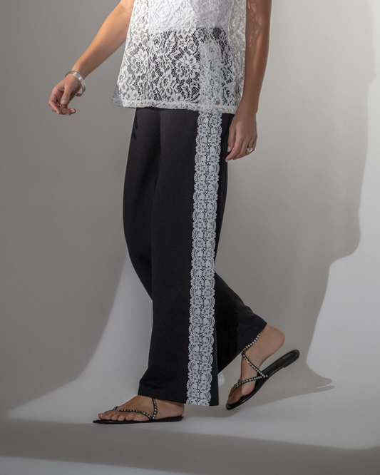 Foursoul Mulher Calças Pretas Com Fita De Renda